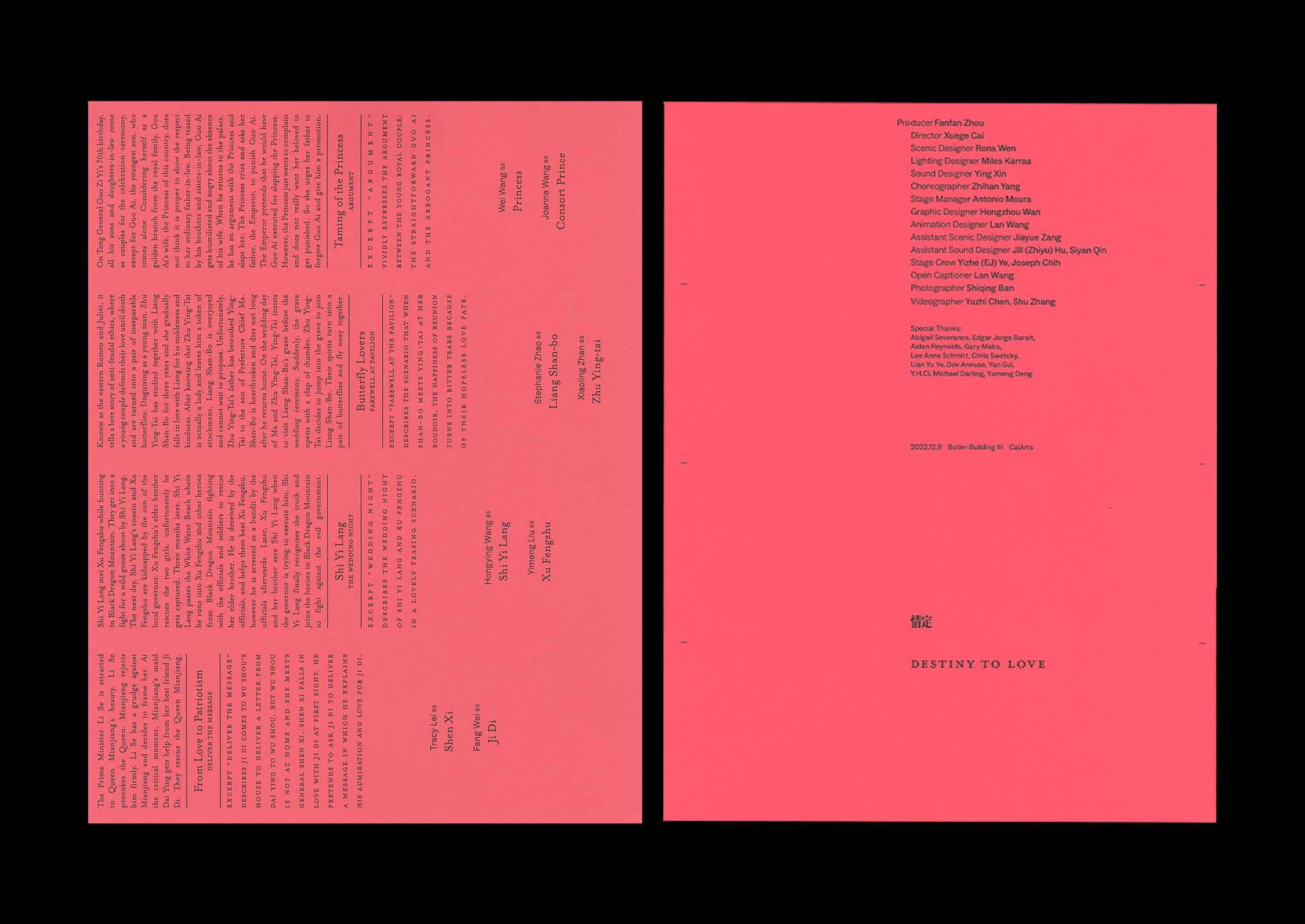 Identity includes poster and program designed for Chinese Yue Opera performance produced by Fanfan Zhou at California Institute of the Arts