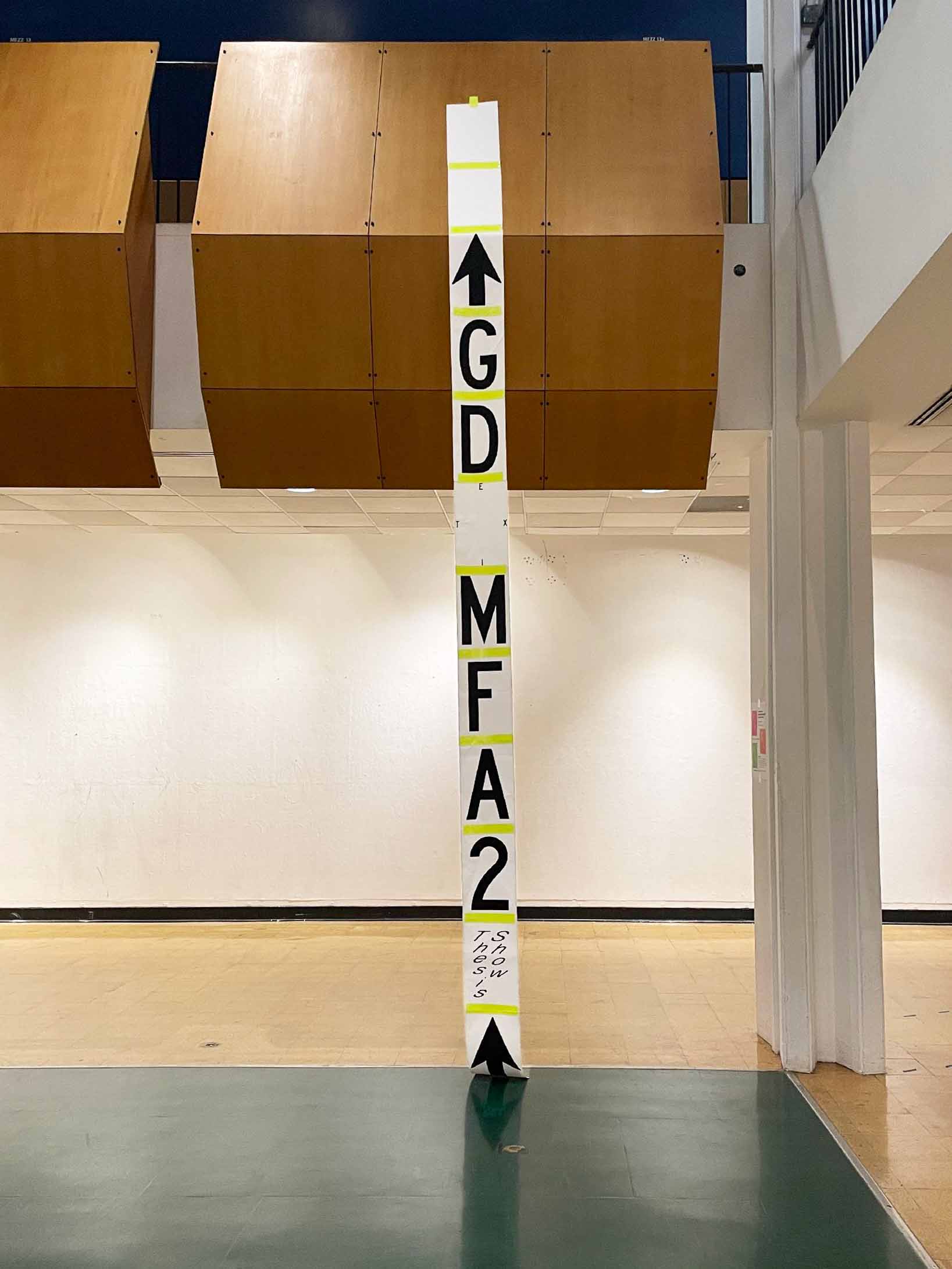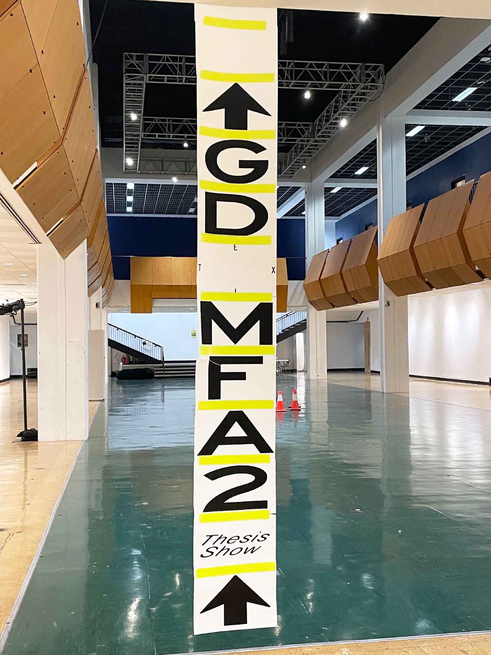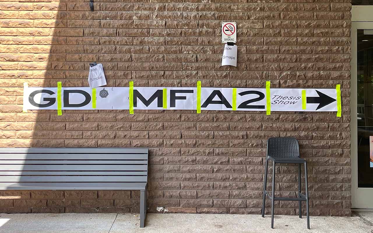 The identity design for 2023 CalArts Graphic Design MFA2 Thesis Show: EXIT. Designed and installated within limited time and budget. Using two different width of Highway Gothic and basic 11' x 17' to accommodate various viewing scenarios. Poster designed with Zhen Lu.